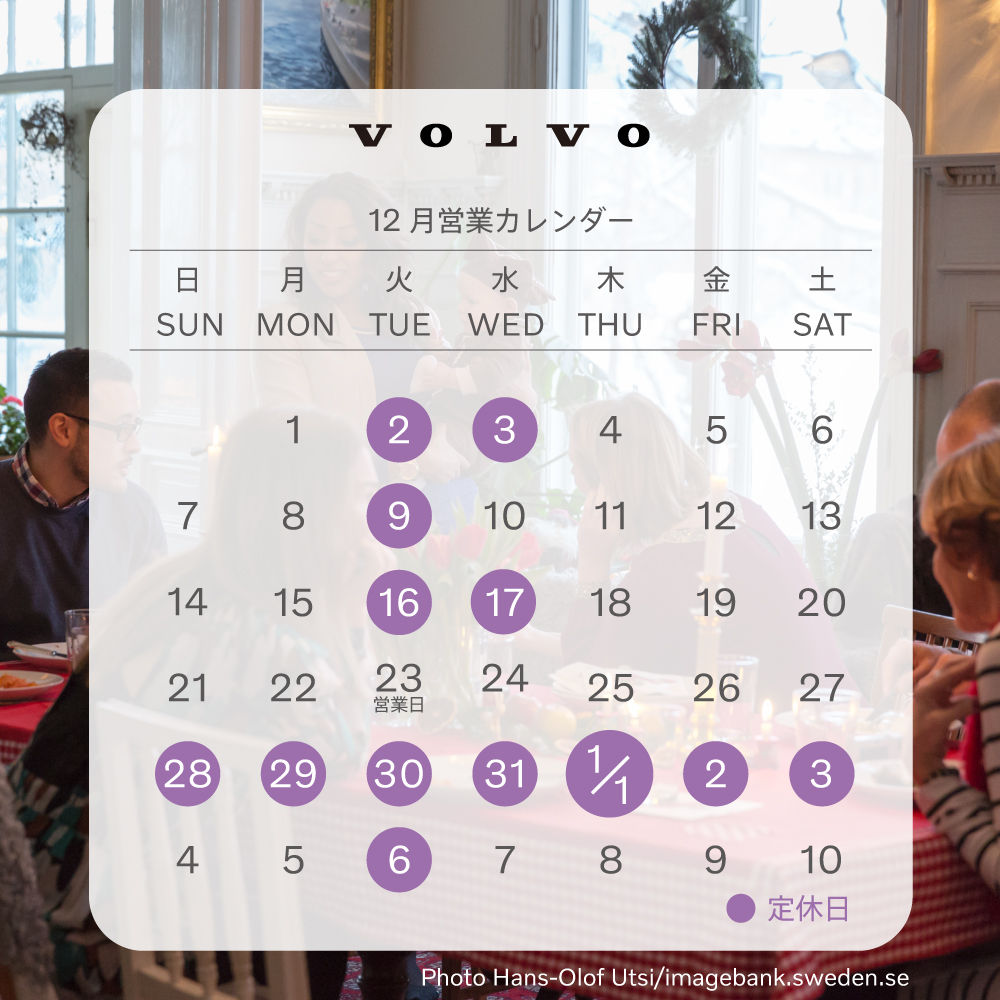 12月は2日・3日・9日・16日・17日の定休日に加え、