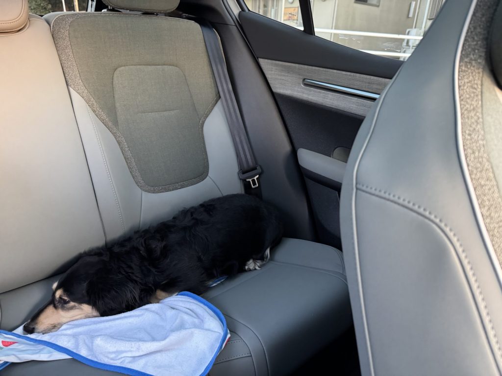 後日、後部座席でくつろいでいる様子を激写していただき