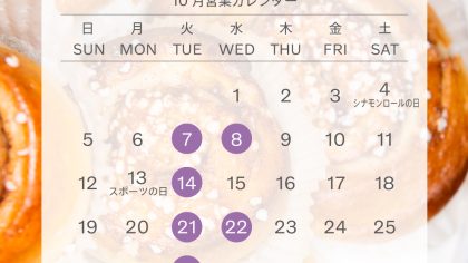 お世話になります。セールスマネージャーのトウジョウです。早いものでもう10月ですね。私にとっては食欲の秋!毎年秋の味覚を食べ過ぎてしまうので今年は食べた分だけ運動しようと思います。 さて今回は10月の定休日をご案内させていただきます!8日、22...